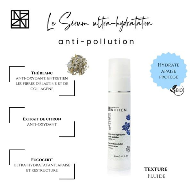 Offrez à votre visage une véritable cure de beauté et de protection grâce au sérum anti-pollution et hydratant Nohèm, délicieusement parfumé aux notes poudrées du lotus. Faites vivre l'expérience d'une hydratation ultime à votre peau et offrez-lui un bouclier anti-pollution. Le sérum anti-pollution Nohèm, issu de notre gamme hydratante a été spécialement conçu pour les peaux fatiguées et déshydratées.