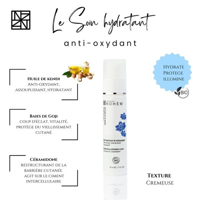 Le soin hydratant et anti-oxydant Bio Nohèm, délicatement parfumé au lotus sacré, est une véritable révélation pour la beauté de votre peau. Enveloppant votre visage d'une hydratation et d'une protection optimales pendant 24 heures !