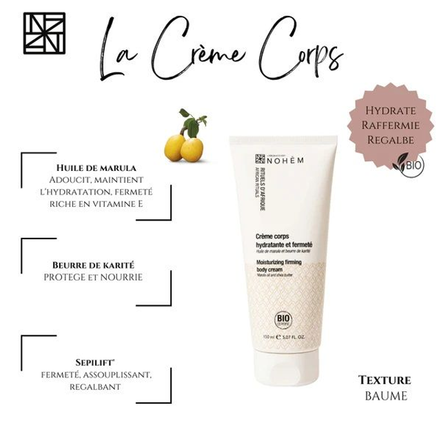 Notre crème corps raffermissante et hydratante, imprégnée d'un parfum chaleureux et voluptueux, offre à votre corps une véritable cure de douceur. Cette formule unique repose sur une concentration exceptionnelle d'ingrédients naturels provenant des quatre coins du monde, mettant en avant les propriétés bienfaitrices de l'huile d'argan du Maroc, de l'huile de marula d'Afrique du Sud, et du beurre de karité du Burkina Faso.
